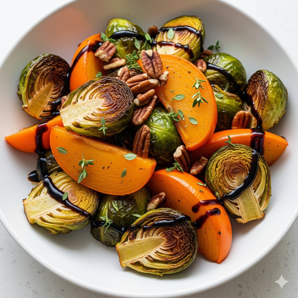 Roasted Persimmon & Brussels Sprouts: A Sweet and Savory Fall Side